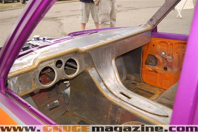 all metal interior with karmaghia gauge cluster, hand made floor going to be painted with leather frenched padding in the floor. everything includding the roof will be painted and the dash flows into the center counsel and back around the seats into the door and back into the dash