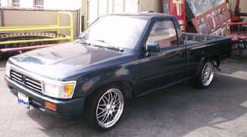 4 runner lights,grill,fenders 2wd bumper/valance-shaved fuel filler door,tailgate handle-roll pan -PPG green w/HOK blue metal flake paint&body - BODY PROS Garden Grove CA 4 sale