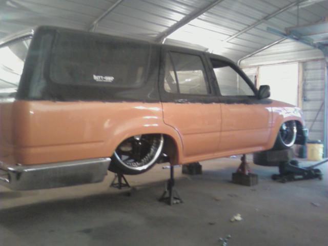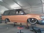 2002 TACOMA FRONT CLIP SECTIONED REAR BUMPER RESKINNED TAILGATE BODYLINE WRAPPED AROUND SHAVED -- TAILLIGHTS - DOOR HANDLES - ANTENNA - GAS DOOR - ROOF RACK - 3rd BRAKELIGHT - HOOD PISSERS - REAR WIPER ALL STEEL DOGLEGS IN REAR DOORS - PAINT PROVIDED BY R-M DIAMONT - PAINT APPLICATION BY BUTT-UHH SPRAYING - BILLET GRILLE PROVIDED BY PRECISION DESIGN
