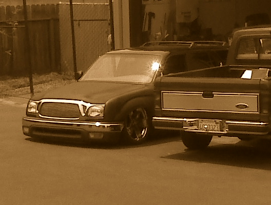 mostly stock with 2001 tacoma front end, minus side markers, antenna and windshield wipers