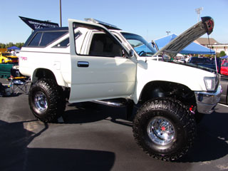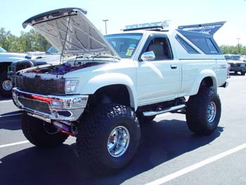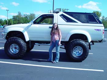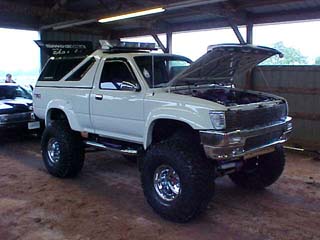 3 inch body lift, 4 half Pro Comp lift with a 2 half soft ride added. 10 Pro-Comp shocks, 5.29 gears from West Coast Diff., Downey 1400lb clutch, and over 60 hours in paint detail. Purple, White, Red, and Black