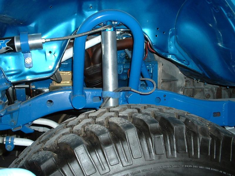 Front: 2 1/2" springs, 2 1/2" shackles,custom spring hangers with a 1" added for the weight of the V8 motor,moved the crossmember back 10" for the 5-speed tranny,moved the brackets to the inside of the frame,double shocked the rear,shaved & boxed the rear frame at the end of the shackles.