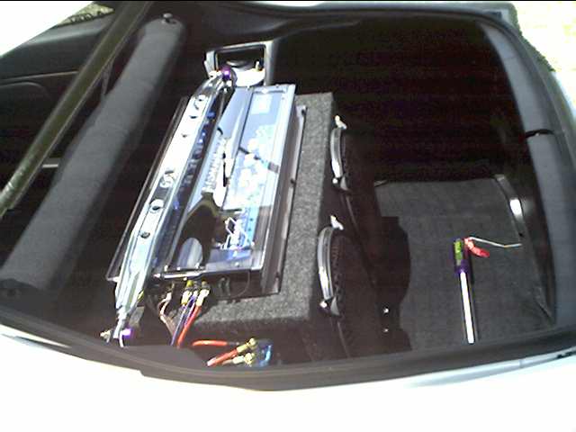 panasonic cd head unit and 6 1/2inch kenwoods 3 ways in the doors and in back panals plus two 12inch cerwin-vega VEGA series subs pushed by a fire and ice 1600 watt amp with a 1 farad lightning audio capacitor
