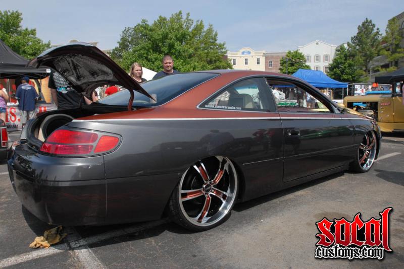 2 tone tweaked factory color on top, lexus color on bottom, chrome airbrush stripe, tailights painted and trimmed to match