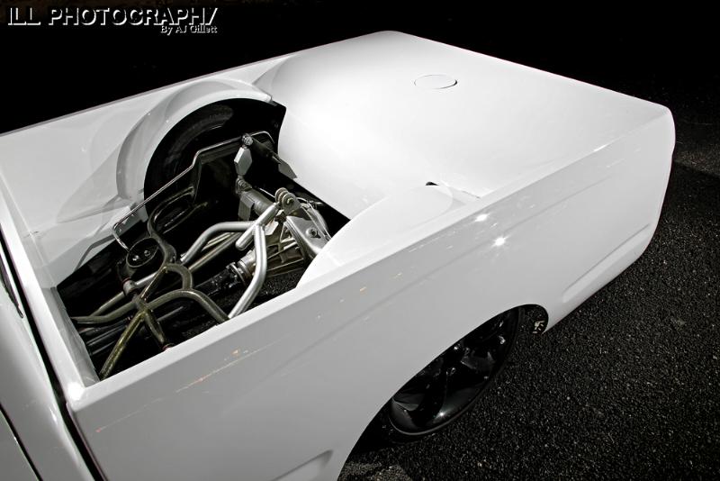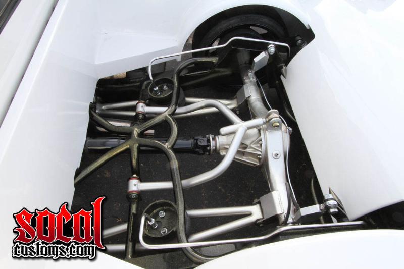 Full custom rear, bags on diamond lowers, through the frame bell crank shocks, Slams up front conitechs out rear. Rides like a dream.