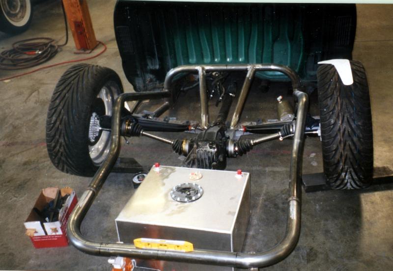 UNDER CONSTRUCTION, Independent Rear Susp., 1/2 inch valves with Air Cylinders from EAI (Excentrix Auto Innovations), http://www.excentrixauto.com/ Full Tube rear sub-frame built by Brian Jendro at TEMECULA RODS & CUSTOMS, So Cali 909-506-4649