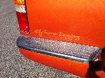 shaved squirters, antenna, gas door, tailgate handle with tailgated molded shut and molded in sectioned rear bumper. stock bed floor with sheetmetal sides, linex'd. Painted GM Atomic Metallic Orange.