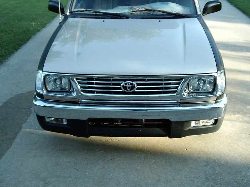 4x4 Front clip all factory toyota parts, Flared bedsides 2 inches on either side, Tonneau cover painted to match, Clear corner markers, turn signals and diamond headlight conversion.