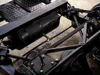 Titanium Customs did it all, F,B,S,S, rebuilt upper and lower controll arms, firestone bags, Titanium Customs 4-link, rebuilt tranny X-member, moved gas tank up 4 inches, rebuilt rear frame clip to house tank switches and 2 compressors. Body dropped total of 3 inches 1 1/2" stock floor and 1 1/2" conventional body drop.