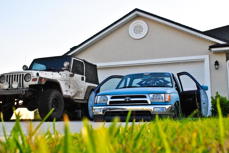 4" stock floor body drop under the stock hood, trailer fenders front and rear, bed cover, 17 gal fuel cell 4runner front end, suicide doors (not from a kit)....