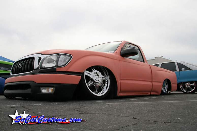 removed emblems, roll pan, tailgate shaved, stock floor body drop. shaved gas door. 2.5 inch chop top. electric roll down back window and license plate.