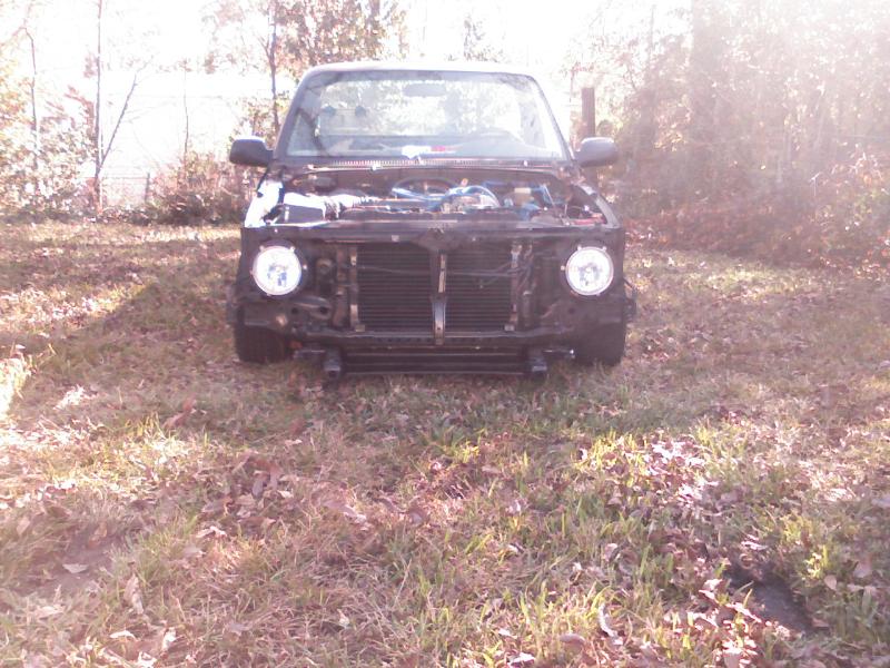 Flat black for now..t-rex billet grill and bumper grill,clear corner lenses.....about to go under the knife as far as body work