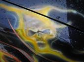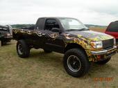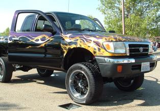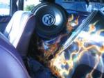 all painted to match with fiberglass box filling the rear with two 15" subs billet wheel