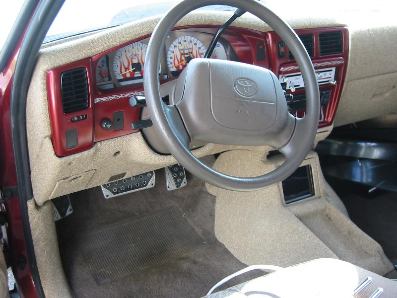 costom built fiberglass center console which houses a tv and a switch box holder thanks to my bud KEN DOGG, billet rear view mirror,white face gauge temperature plate,