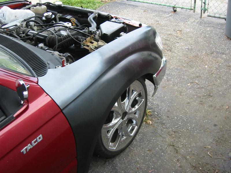 1997 4wd fenders w/ 2004 fender flares added, shaved antenna, shaved full rear end tailgate included, shaved gas door, shaved mirrors with harley billet mirrors in place of stocks, 1998 soild back window (replaced slider window), shaved body lines under rear window, custom made cowl hood to fit my truck, diamond clear headlights, 4wd clear corners, 2001 rear tail lights, 1997 4wd bumper and valance combo with trenz billet insert , and a trenz billet grill, exterior as of now under consruction