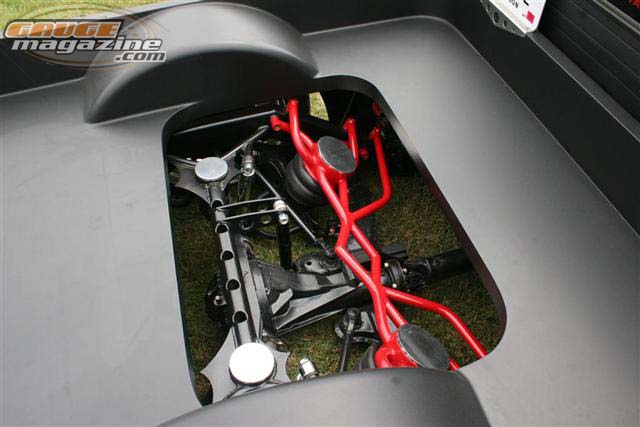 Sheetmetal bed, welded up tailgate, 4wd front sheetmetal, traditional 3.25" bodydrop, Primer, Hand-laid pinstripes by "Shakey BOB"