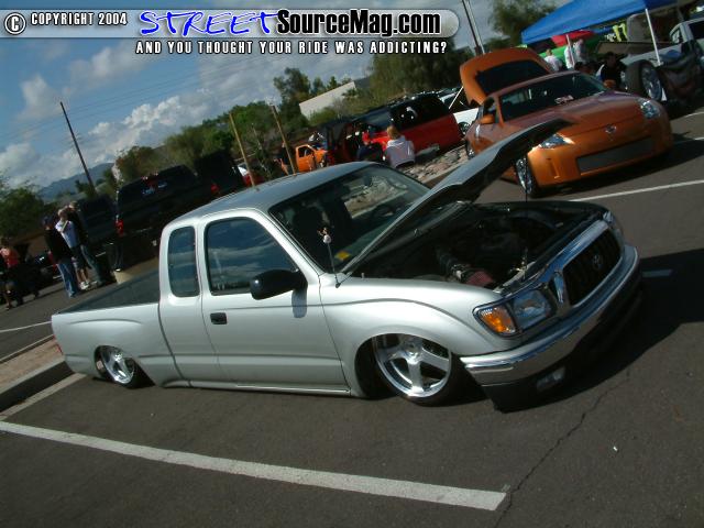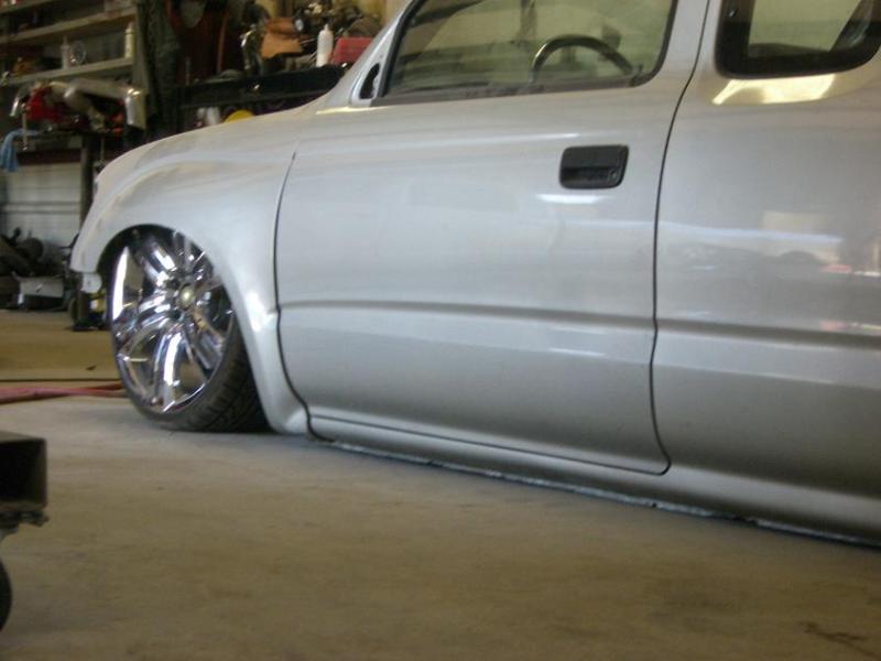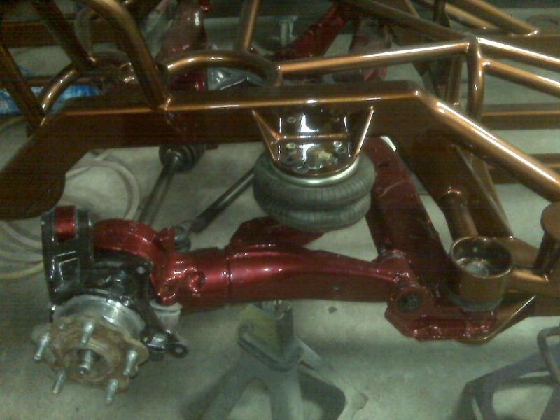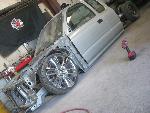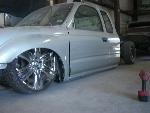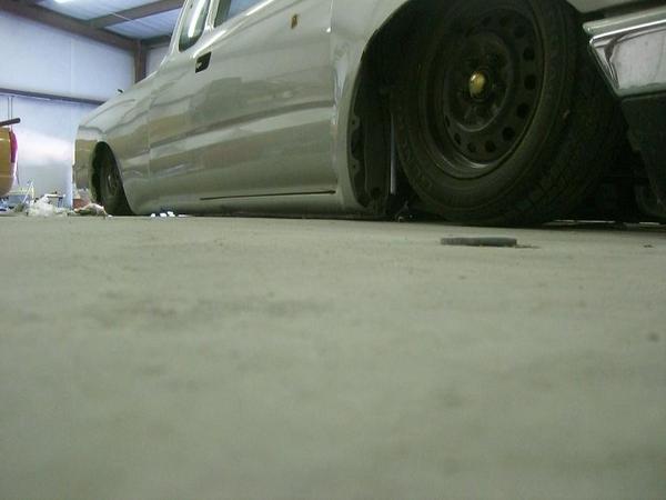 Stock Floor full frame. RX7 IRS fast bagged. Custom lower control arms with uni-balls, heim ends and D.O.M. tubing by Rudy's Rod & Custom. Slam Specialties sponsored 1/2" Digital Stealh Valves controlled by Slam Specialties Digital Stealth Controller, Slam Specialties rs-62 1/2" port all four corners. Sponsored three all silver Air Zenith compresors.