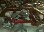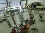 K&N intake, wheel tubs, Chrome Chrome electric high power brake booster from ABS Power Brake Inc with all steal braided lines. Moved battery to under the bed. 15gal fuel cell. Electric fan. Candy Maroon valve cover & intake manifold, silver painted engine(POR-15 engine enamel). needs to be put in.