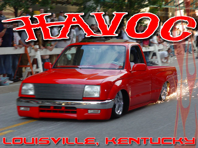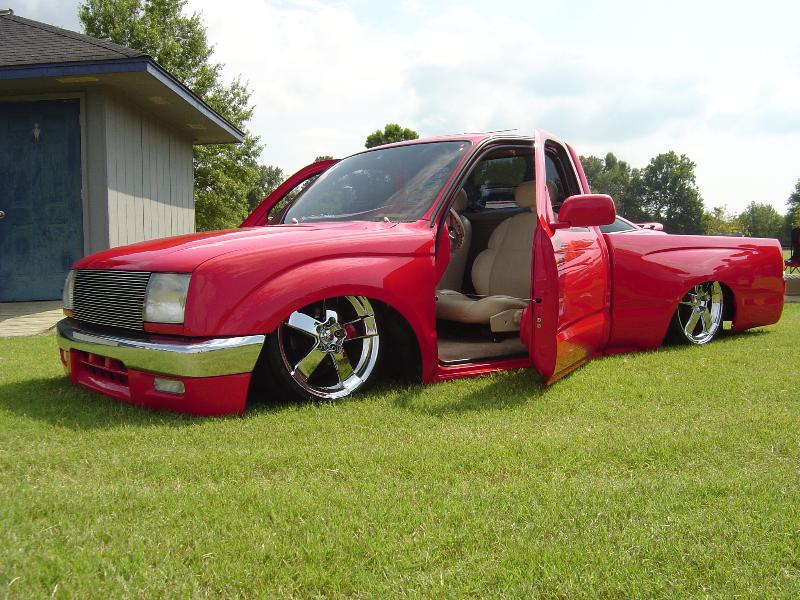 shaved, 4x4 front end, sheetmetal bed, and suicide doors