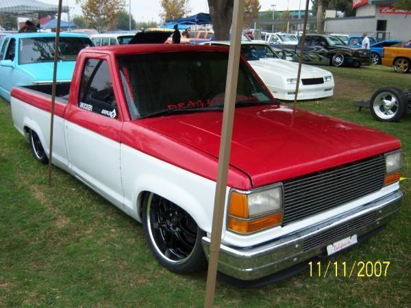 Freaks of Nature member out of the Bakersfield chapter...91 ranger single cab long bed... stockfloored on 20s and a 3/4 frame, hydroholics 1 pump 5 dump setup, toyota front clip, modified ower control arms and drop spindles, sheetmetal floor, firewall and back wall, smoothed door jambs, radiused door corners, shaved drip rails, shaved wipercowl, door handles, keyholes, mirrors, cab seams, civic bucket seats without the headrests. Ford 351 windsor smallblock V8 thats stock for now but will be getting heads, cam, intake, carb, dual shotgun style breather and custom made headers.