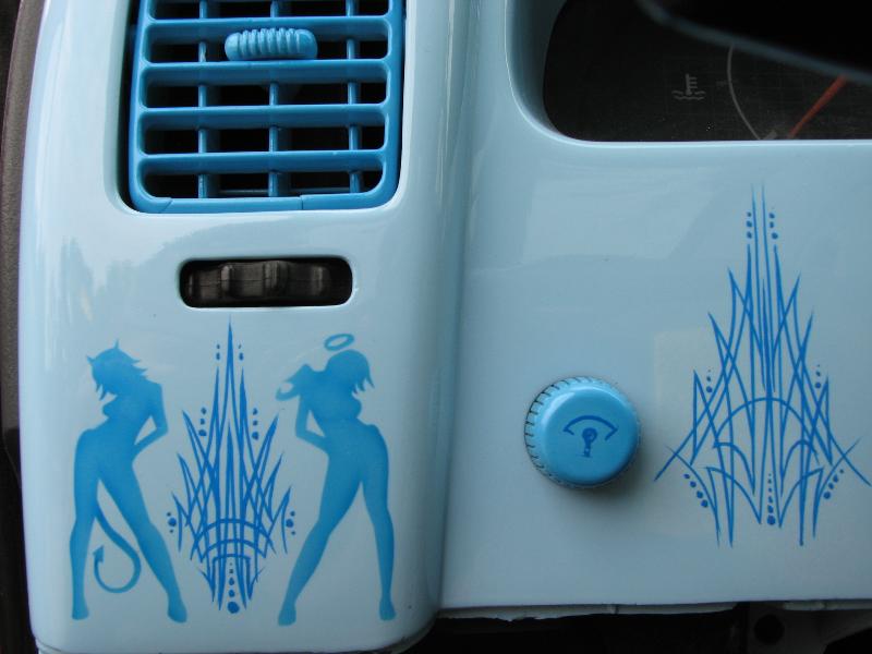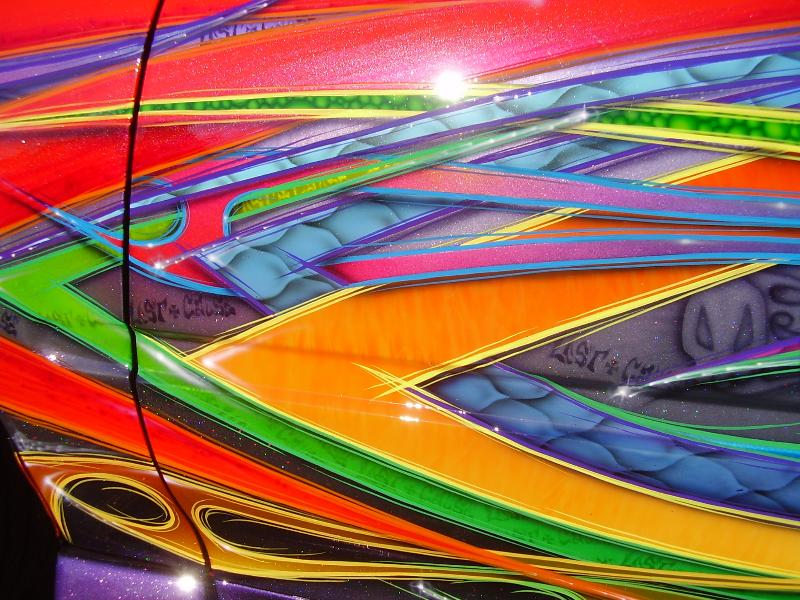 Other than painting, airbushing, and pinstriping,(my 9-5) Mini Truckin is my life and what got me started with my paint&graffix career... you see I couldn't never afford the wild ideas I had for the paint job on my truck. so I was forced to do shit my self (wich sucked at first) But has definitly paid off since practice makes perfect and iv'e had enough practice through out the seven years Ive been at it. The crazy thing is..That I have always been a painter w/out a paintjob! you know how thats goes, it always easier to work on somone elses shit instead of your own. but eventually if I ever finish my mini truck it will be the wildest damn thing you've ever seen...at least thats how I picture it......