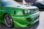 Green and silver metalflake, checker flag ghost painted covering both sides of the car, Custom made body kit ( thanx to jim hall ), Generation II sport mirrors, Light Green Tint all around the car, Bo System twin tipped exhaust, Neon light kit under car ( Green ), custom made carbon fiber spoiler, air slits in the fender walls, and in the hood, for that racing experience, green marker lights, and green fog lights, with strobes in the fog lights ( green )