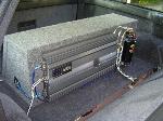7" widescreen in dash pioneer dvd monitor with 5.1 channel surround sound. 2 12" alumapro alchemy subs in a sealed box, 1500x1 alpine V12 amp, 1 farad stinger capacitor, 0 gauge Stinger power wire, 11 speaker system including the 2 subs