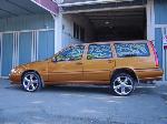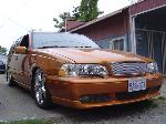 saffron metallic, rear spoiler, orange tribal graffic window tint with 5% backing, 2003 C70 headlight & front corner lights, ipd wire mesh grille, "R" front & rear bumpers, custom wire mesh front bumper inserts